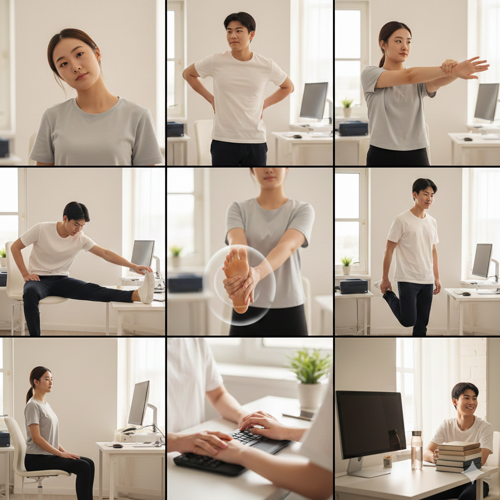 의자 높이 조절, 발 받침 사용, 짧은 기지개라도 허용하는 습관이 집중력 유지와 시험 컨디션 관리에 직결된다.